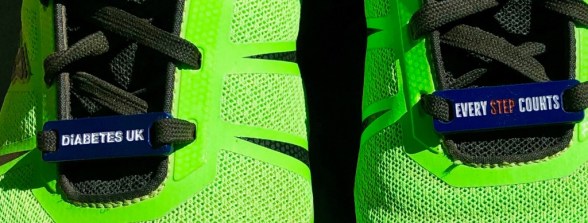 I’ve already pounded over 100 miles wearing my super bright Inov8 Trailfly G300 max trail shoes…And as a reward for earning the first donation Diabetes UK sent me some metal shoe lace charms to wear during the challenge: