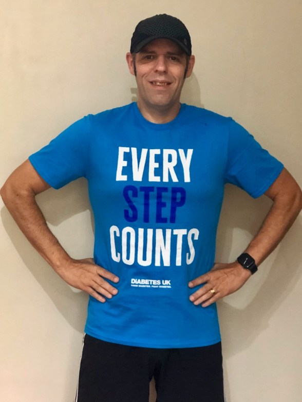 This blindman is celebrating hitting the half way mark of this gruelling challenge…The 500,000 steps (around 250 miles) badge! 🙌