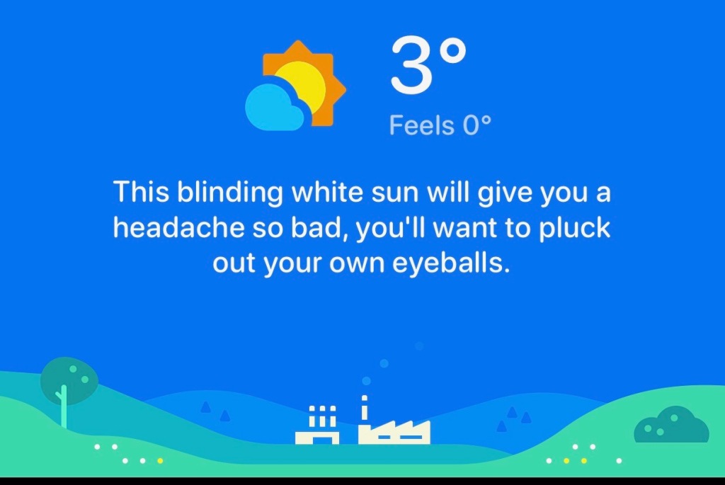 Hi all. Once iβd dragged myself out of bed i saw the sun blitzing through the windows, i checked my weather app to see how cold it was outside so i could choose my layersβ¦The app said exactly what i was thinking as i thought about walking for 6 miles in the blinding sun! π¨